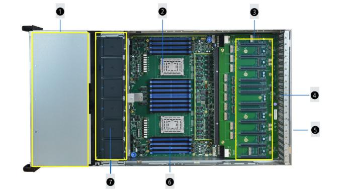 ➌ 12 PCIeG4 x16 FHFL Slots, Up to 10 double-width GPU(s)