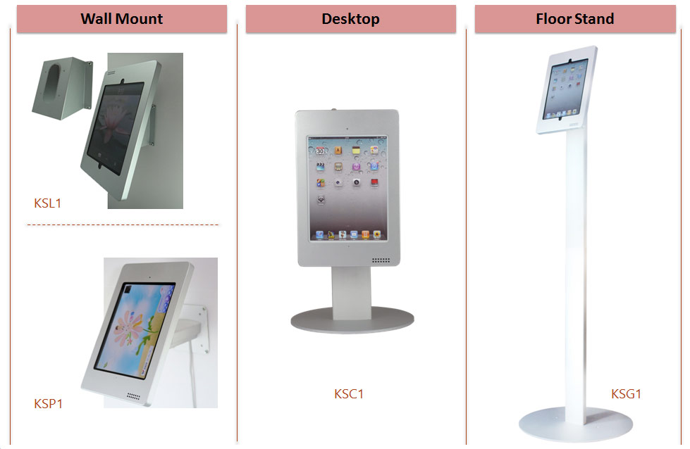 Made of t0.8mm SECC sheet metal with stylish curve and blocked the rear camera of iPad - Security with socket-screw, CAM key lock, Kensington slot